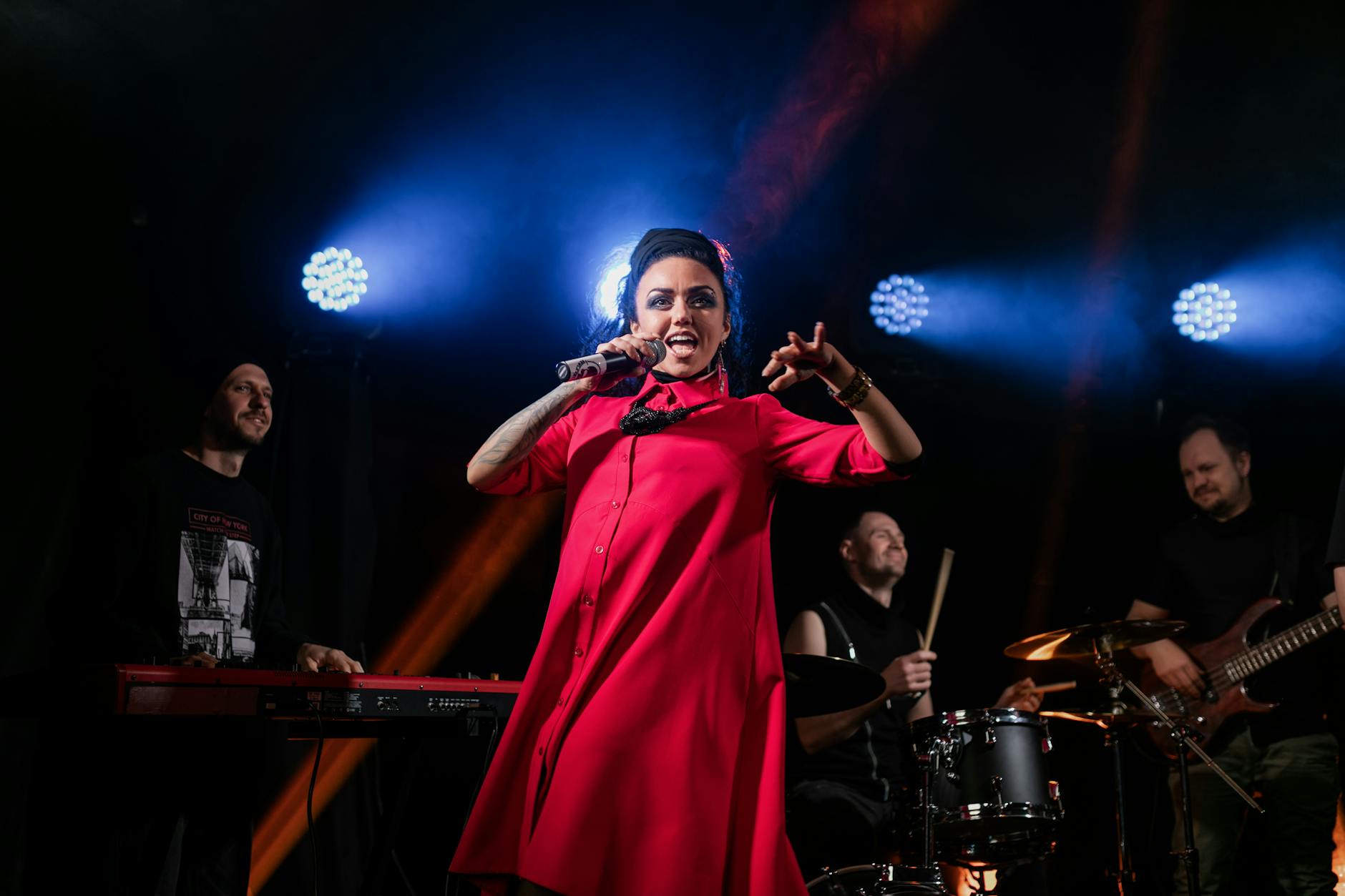 1. Koncert rockové kapely na stadionu - Vystoupení populární rockové kapely před tisíci fanoušky na velkém stadionu, doprovázené ohňostrojem a speciálními světelnými efekty. 2. Akustický koncert v klubu - Intimní vystoupení zpěváka s kytarou v malém klubu, kde si mohou fanoušci vychutnat jeho písně v klidnějším prostředí. 3. Symfonick